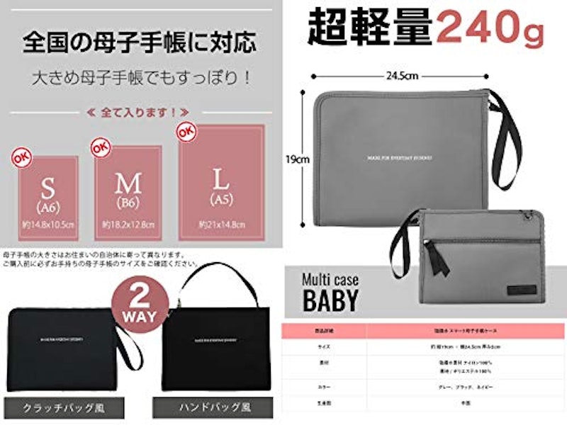 スマート母子手帳ケース Baby 大容量 整理上手 超軽量 強撥水 2way マルチケース Everyday Journey