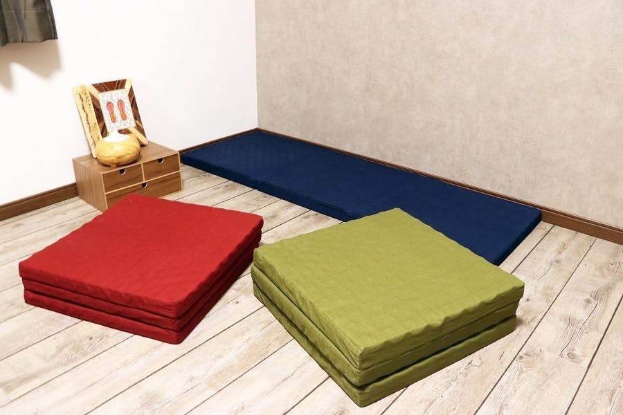 たためる畳マットレス。 天然素材のい草は優れた調湿があり、蒸し暑い季節もサラッと快適に過ごせます。 また、消臭効果・空気浄化機能を備えています。 並べて敷けば置き畳としても使えます。 4つ折りタイプなのでコンパクトに収納可能です. ミニトゥルースリーパー(ごろ寝マット)とは、こんな感じの小さいマットレスみたいな感じです。 サイズは、 縦47センチ×横110センチ という大きさで、名前の通りゴロゴロするのにちょうど良い大きさですね。 使い方は、まさにゴロゴロする時に. 折りたためばスツールやオットマンにもなるマットレスです。 ひとつ折り返せばうつぶせ寝もラクラク。 2つ折り返せばソファ感覚でリラックス。 用途に合わせていろいろな使い方ができるので、家事や仕事の合間にちょっと寝転びたいときにもおすすめです。 中材にしっかりとした弾力のウレタンフォームを使用しているので安定感がよく、座り.
